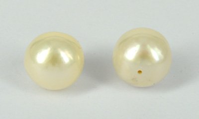 Fresh Water Pearl White almost Round Hole 0.7 13-14mm Pair
