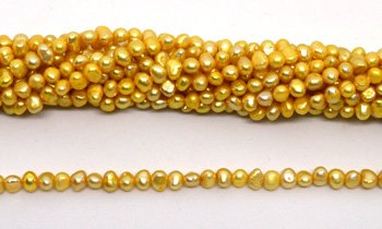Fresh Water Pearl potato side drill 7x5mm Gold strand 72 beads