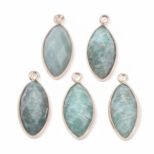 Natural Amazonite Pendants, with Golden Plated Edge Brass Findings, Faceted, Horse Eye, 20x9x5mm, Hole: 1.2mm