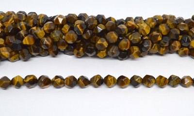 Tiger Eye faceted diamond cut 10mm str 38 beads