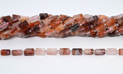 Red Iron/Hematoid Quartz Faceted Tube 8x11mm strand 30 beads