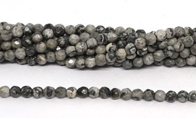 Grey Picture Jasper Faceted Round 4mm strand 100 beads