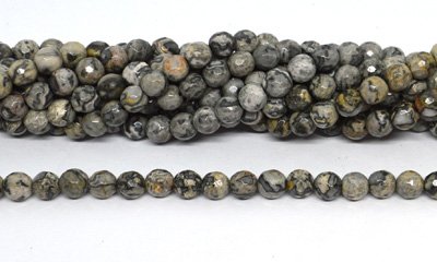 Grey Picture Jasper Faceted Round 6mm strand 66 beads