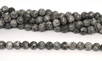 Grey Picture Jasper Faceted Round 10mm strand 41 beads