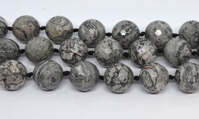 Grey Picture Jasper Faceted Round 18mm strand 22 beads