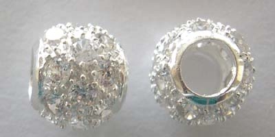 LAST ONE Sterling Silver Bead Round CZ 10mm 4.7mm hole