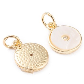 Brass 18k Gold Plated Mother Of Pearl Pendant round 12.5x10mm 2 PACK